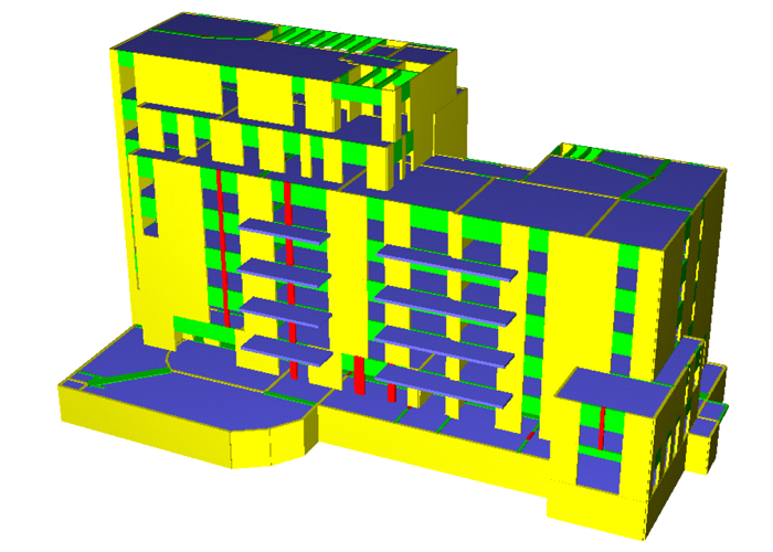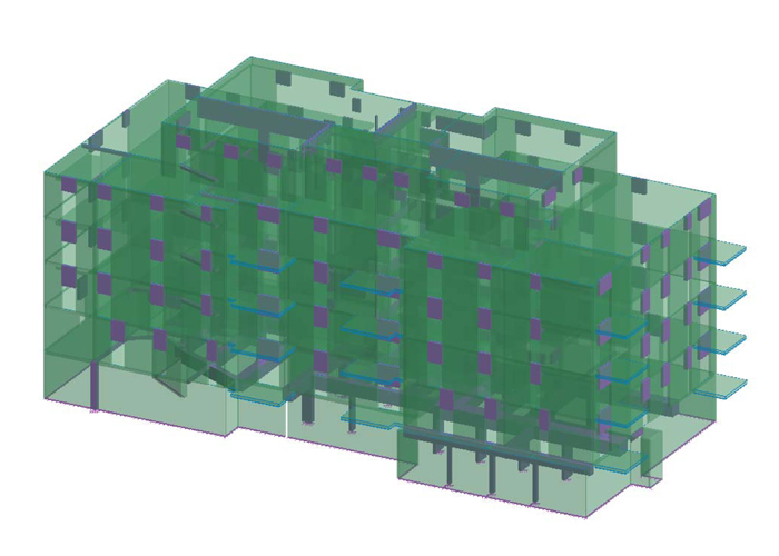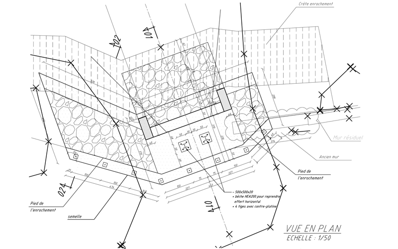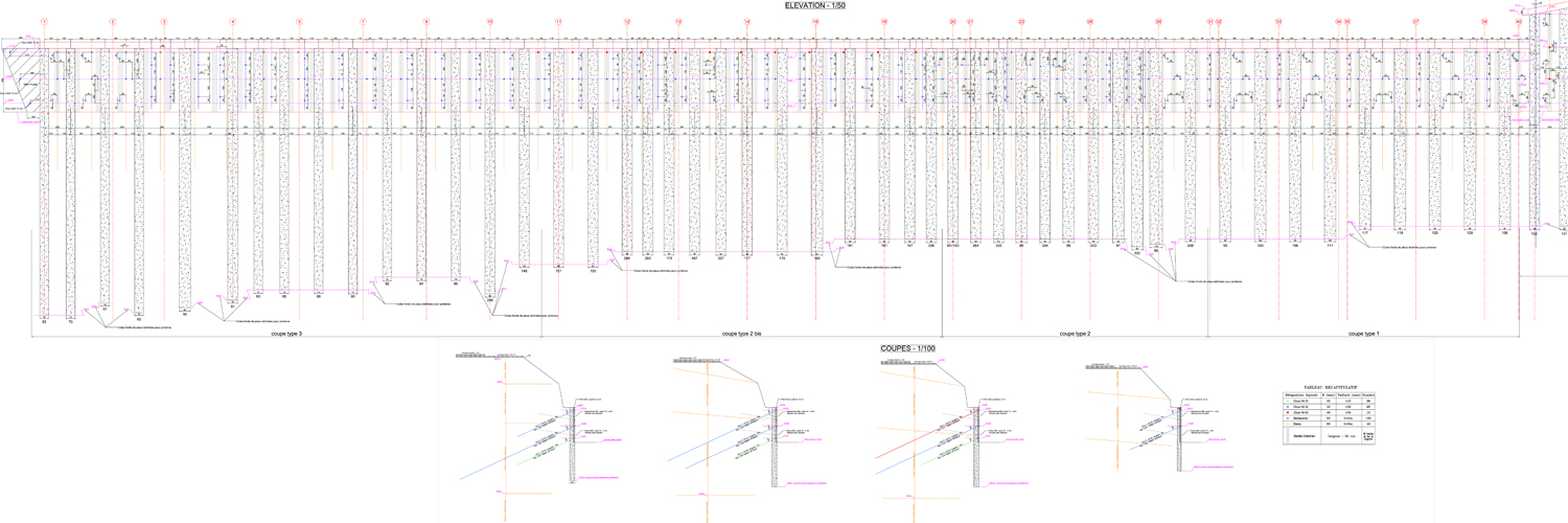 Construction de 35 logements en R+4 sur 2 blocks, deux niveaux de sous sol sur un et un niveau de sous sol sur l'autre. Fondation semi-profonde (semelles sur puits en gros béton).