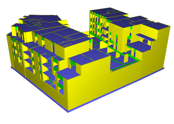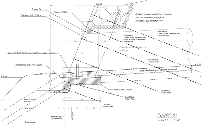 Construction de 35 logements en R+4 sur 2 blocks, deux niveaux de sous sol sur un et un niveau de sous sol sur l'autre. Fondation semi-profonde (semelles sur puits en gros béton).